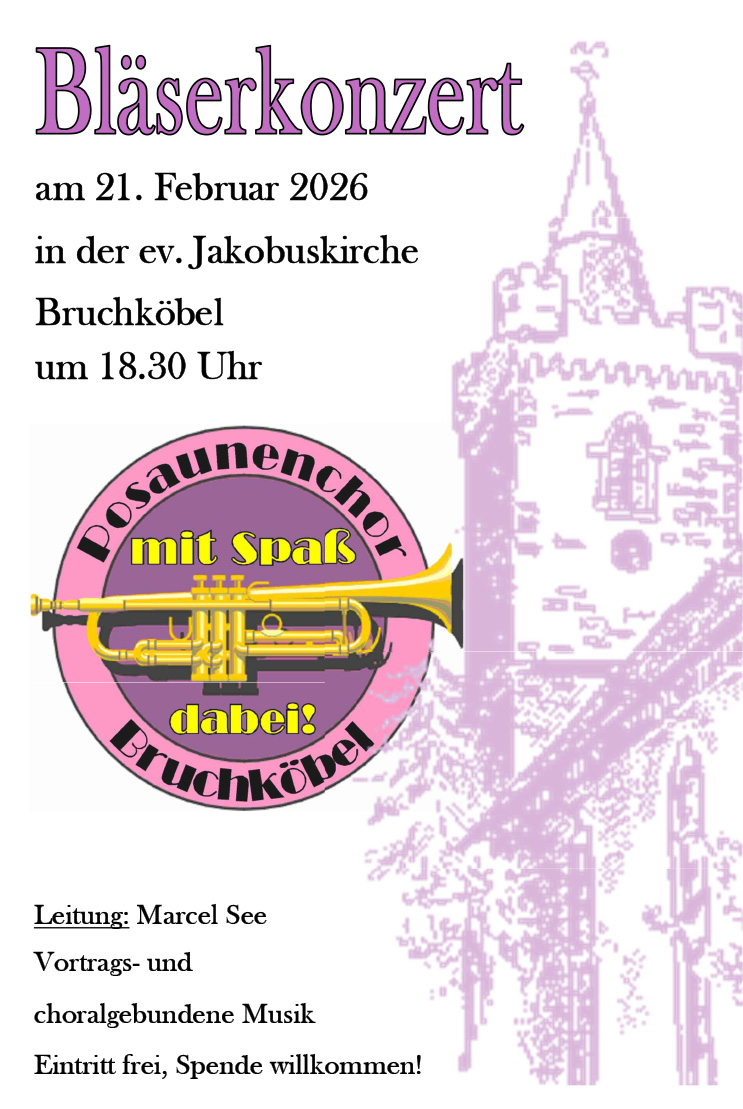 Der Posaunenchor Bruchköbel lädt am Samstag, dem 21. Februar 2026,...