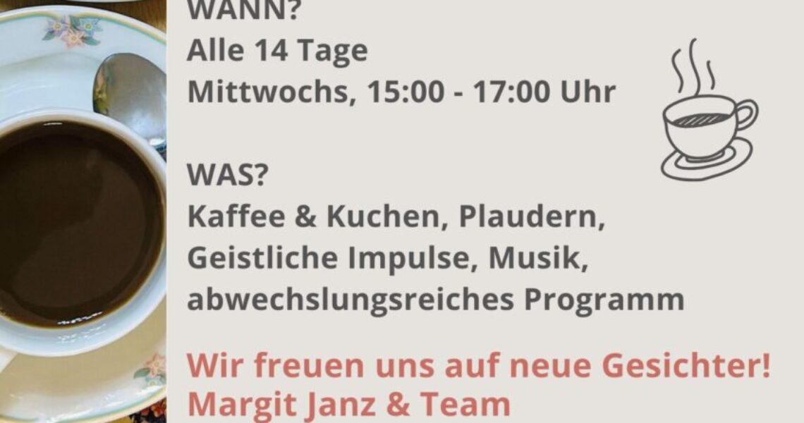 Margit Janz und ihr Team laden herzlich zum Seniorenclub ein. Alle 14 Tage bietet der Seniorenclub Gelegenheit zusammenzukommen und ein abwechslungsreiches Programm zu erleben. Neben Zeit zum Plaudern und leckerem Kaffee und Kuchen, gibt es immer einen geistlichen Impuls sowie ...