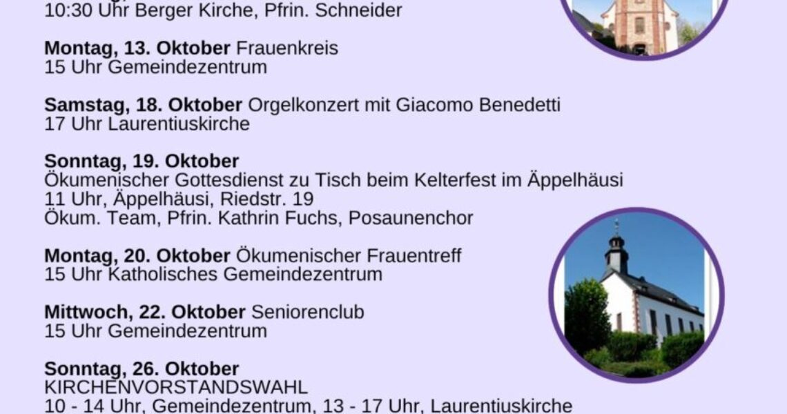 In diesem Jahr wird der ökumenische Gottesdienst zum Kelterfest am 19.10.2025 um 11 Uhr im Äppelhäusi in der Riedstraße 19 als Gottesdienst zu Tisch gefeiert. Er wird vom christlich-jüdischen Dialog ausgerichtet. Pfarrerin Kathrin Fuchs, Rabbi Andrew Steiman und Veronika Brier ...