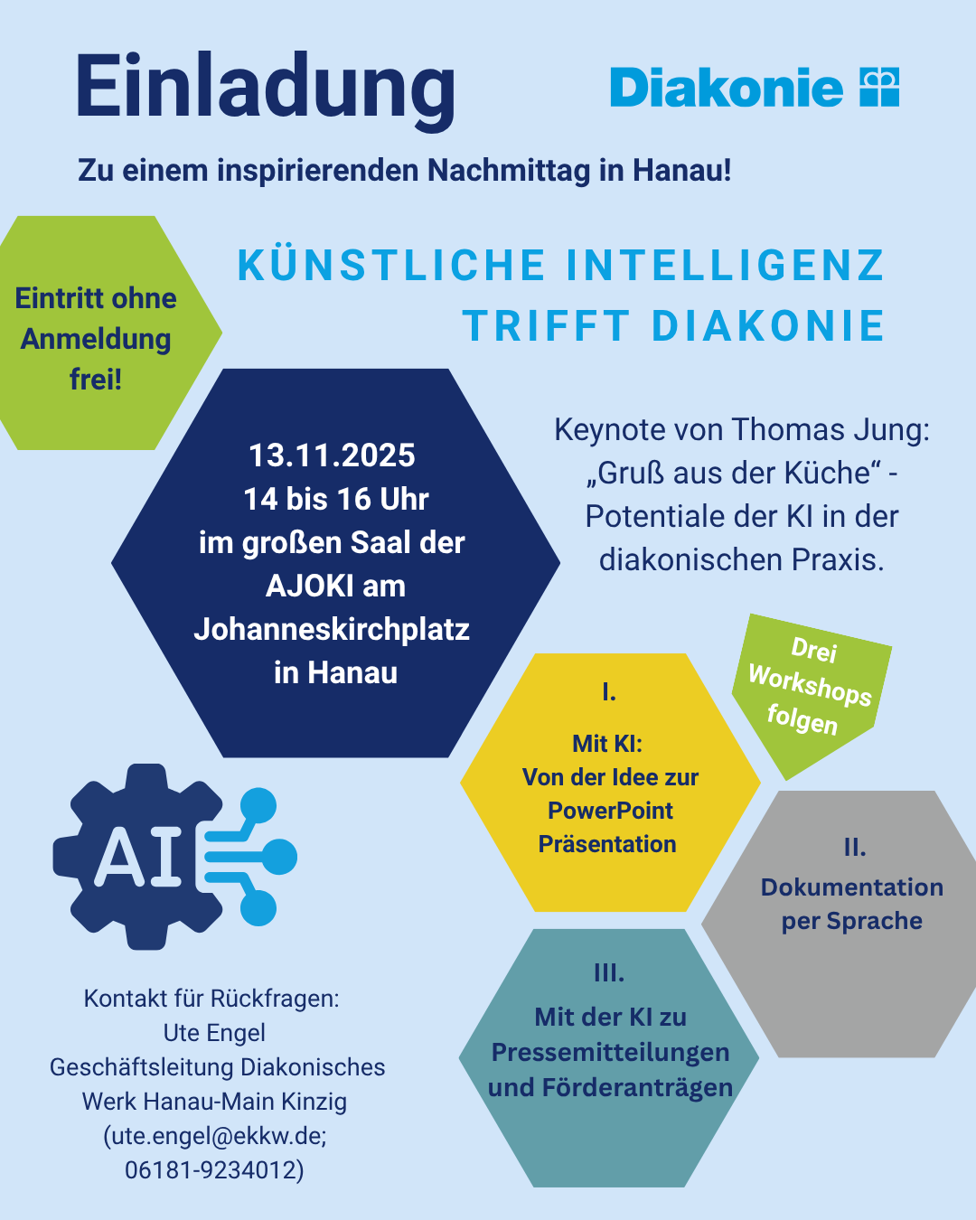 Die Veranstaltung richtet sich an alle Interessierten aus dem sozialen und kirchlichen Bereich sowie an Technikneugierige, die erfahren möchten, wie KI sinnvoll und verantwortungsvoll eingesetzt werden kann.