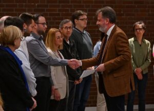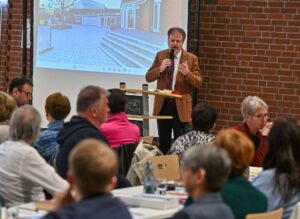 Egal ob neue Gesichter oder erfahrene Synodenmitglieder: „Sie alle sind Glaubensermöglicher und Hoffnungsträger für eine zutiefst zerstrittene Welt“, so Dekan Dr. Martin Lückhoff. Er bedankte sich bei den Anwesenden für deren Bereitschaft, Verantwortung für ihre Kirche zu übernehmen und sich nicht nur in der eigenen Gemeinde sondern auch dem Kirchenkreis einzubringen. Das Engagement in der Kreissynode sei dabei eine sehr vielschichtige Aufgabe, wie der Dekan feststellte. Im Mittelpunkt stehe dabei die Glaubensarbeit und diesen weiterzugeben. Dies sei im Kirchenkreis Hanau in verschiedensten Formen möglich. Von traditionellen Gottesdiensten über große Tauffeste, bei Angeboten des Diakonischen Werkes oder in der Jugendarbeit. „Wir wollen Menschen einladen, Glauben zu erleben und zu teilen.“ Vielfalt spiele dabei eine große Rolle. Als Mitglieder der Kreissynode seien die Anwesenden deshalb mehr als nur Abgeordnete ihrer jeweiligen Gemeinde: „Sie haben das Ganze im Blick.“ Für die sechsjährige Amtszeit der neuen Kreissynode wünschte er allen gutes Gelingen, Gottes Segen und das die gemeinsame Arbeit sich an dem zu Beginn des Abends gemeinsam gesungenen Kanons orientiere: „Vielstimmig, aber doch im Einklang miteinander.“