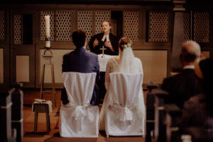 Mit Orgel? Mit Orgel und Solist:in? Mit Sänger:in? Solo oder im Duett? Welche Lieder wollen Sie singen? Welche Texte sollen gelesen werden? Welche Blumen sollen die Kirche schmücken? Welche Gäste sollen/wollen sich beteiligen? Was ist Ihnen wichtig am Gottesdienst, an Ihrem Weg als Ehepaar? Was wollen Sie sich versprechen, wenn Sie Ja zueinander sagen? Und nicht zuletzt: Welches soll Ihr Trauspruch sein, der Sie Ihr Leben lang begleitet? Lauter Fragen, die wir gemeinsam klären in einem oder auch mehreren Gesprächen.