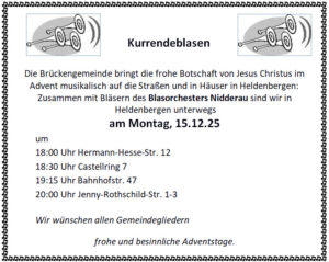 Die Brückengemeinde bringt die frohe Botschaft von Jesus Christus im Advent musikalisch auf die Straßen und in Häuser in Heldenbergen:
