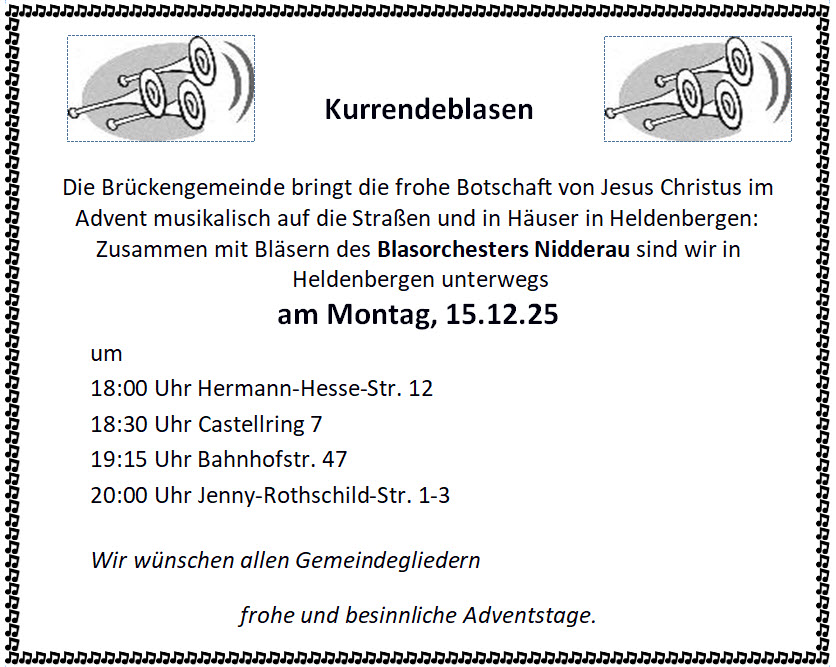 Die Brückengemeinde bringt die frohe Botschaft von Jesus Christus im Advent musikalisch auf die Straßen und in Häuser in Heldenbergen: