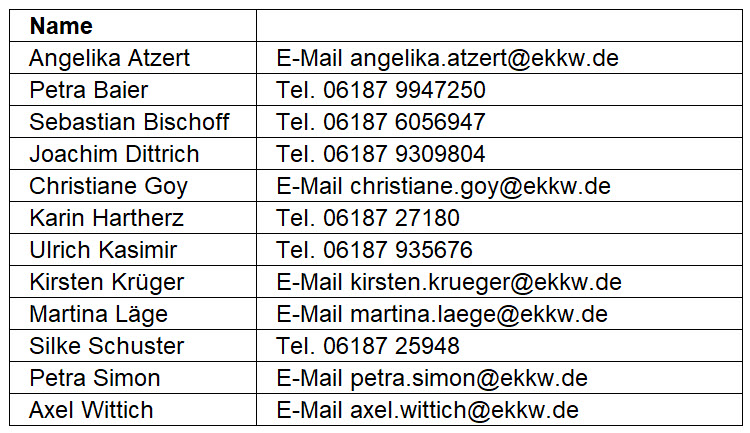 Aktuell besteht der Kirchenvorstand der Ev. Brückengemeinde Heldenbergen aus zwölf Kirchenvorsteher|Innen: