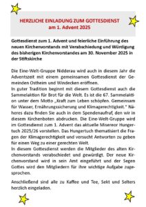 Die nächsten Gottesdiensttermine (üblicher Beginn um 10 Uhr) finden Sie hier als PDF.